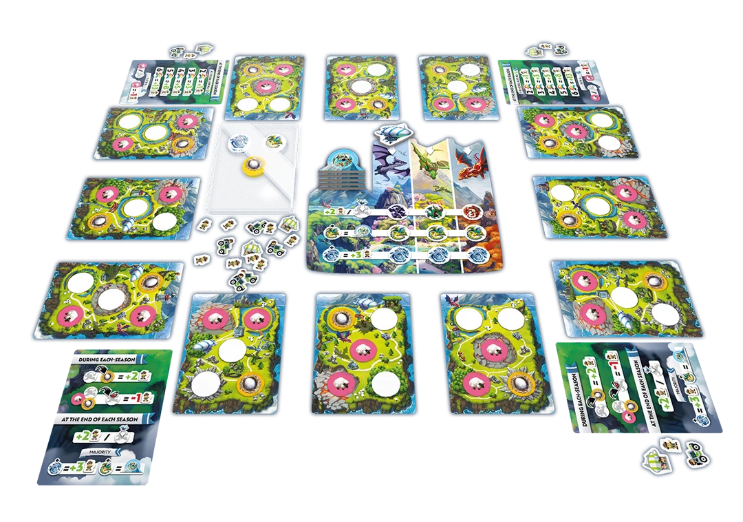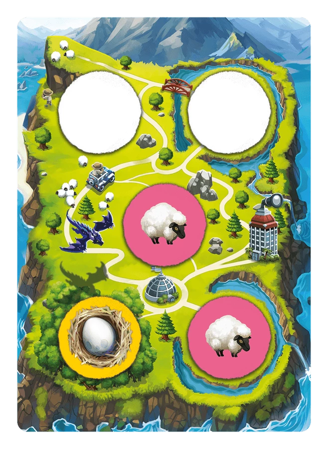 Dragon Parks is a drafting game which makes use of transparent cards. Select a new card each turn to put on one of your three islands, adding or covering dragons in this park as you do. Some dragons hate to be covered by others and will snap back at you, and if you manage to hatch an egg by covering it, it will attract new visitors!