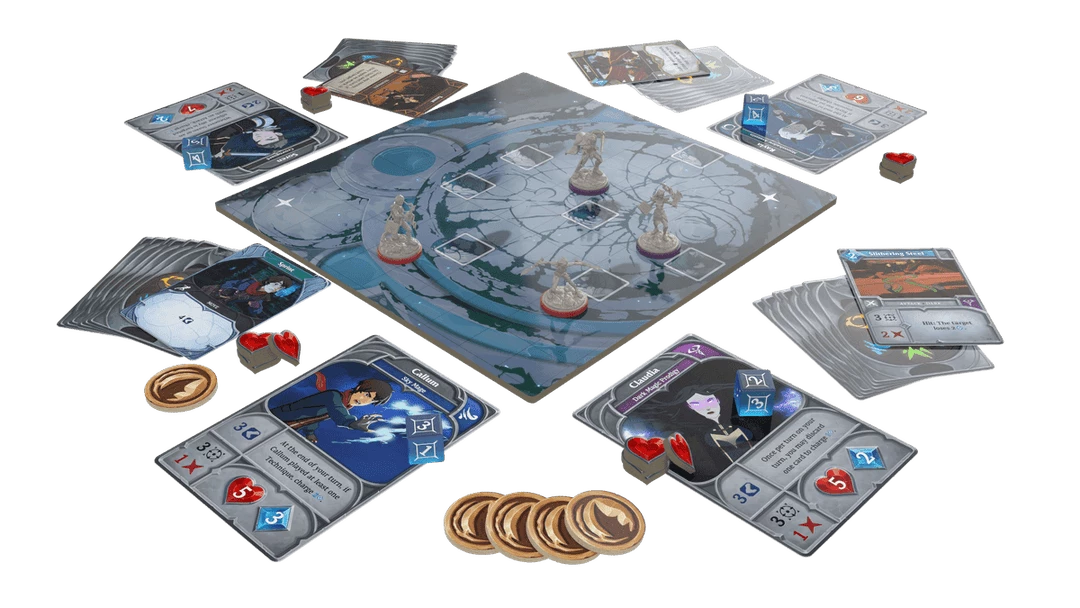 Inspired by the Emmy-award winning animated series, The Dragon Prince: Battlecharged is a card-based tactical miniatures game. Two teams, each consisting of 2-3 heroes, face off in fast-paced duels on one of six battlemaps.