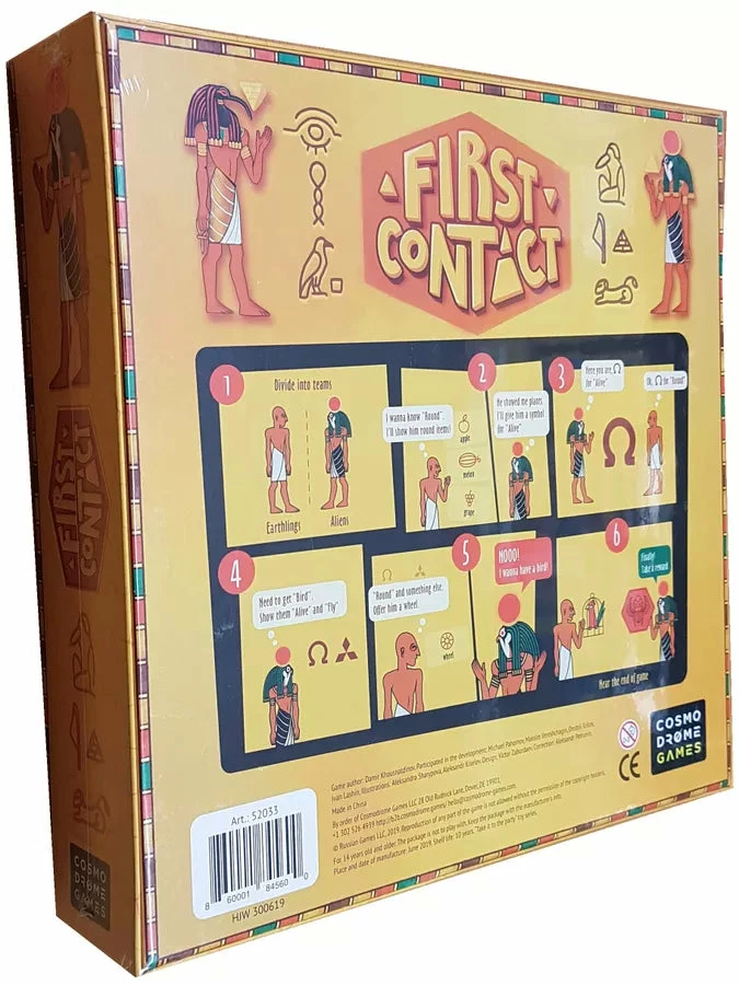 In First Contact, Aliens would draw weird symbols, trying to explain which earthly items they’d like to collect. Puzzled Egyptians are to figure out what this could mean. On top of that, Aliens compete for being the first to grab the souvenirs and fly back home, while each human wants to be the best at learning Alien language!