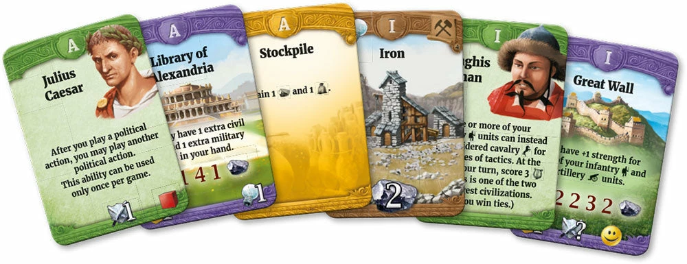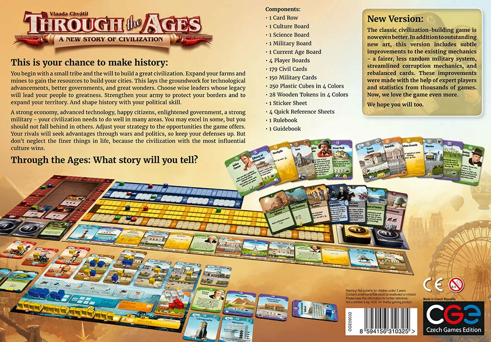 Through the Ages: A New Story of Civilization is the new edition of Through the Ages: A Story of Civilization, with many changes small and large to the game’s cards over its three ages and extensive changes to how military works.