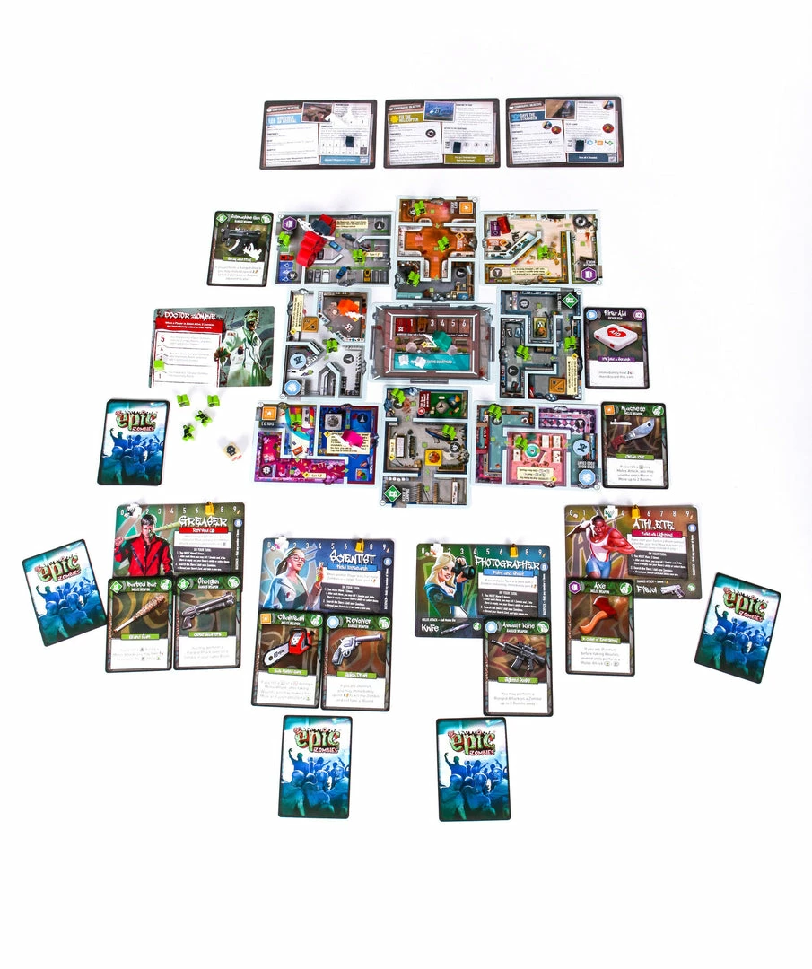 In Tiny Epic Zombies, survivors are always on the run, collecting weapons, killing Zombies and working toward completing objectives. Completing 3 objectives can win you the game but if you’re too focused on the objectives, the Zombies will overrun the mall and that will be the end of you.