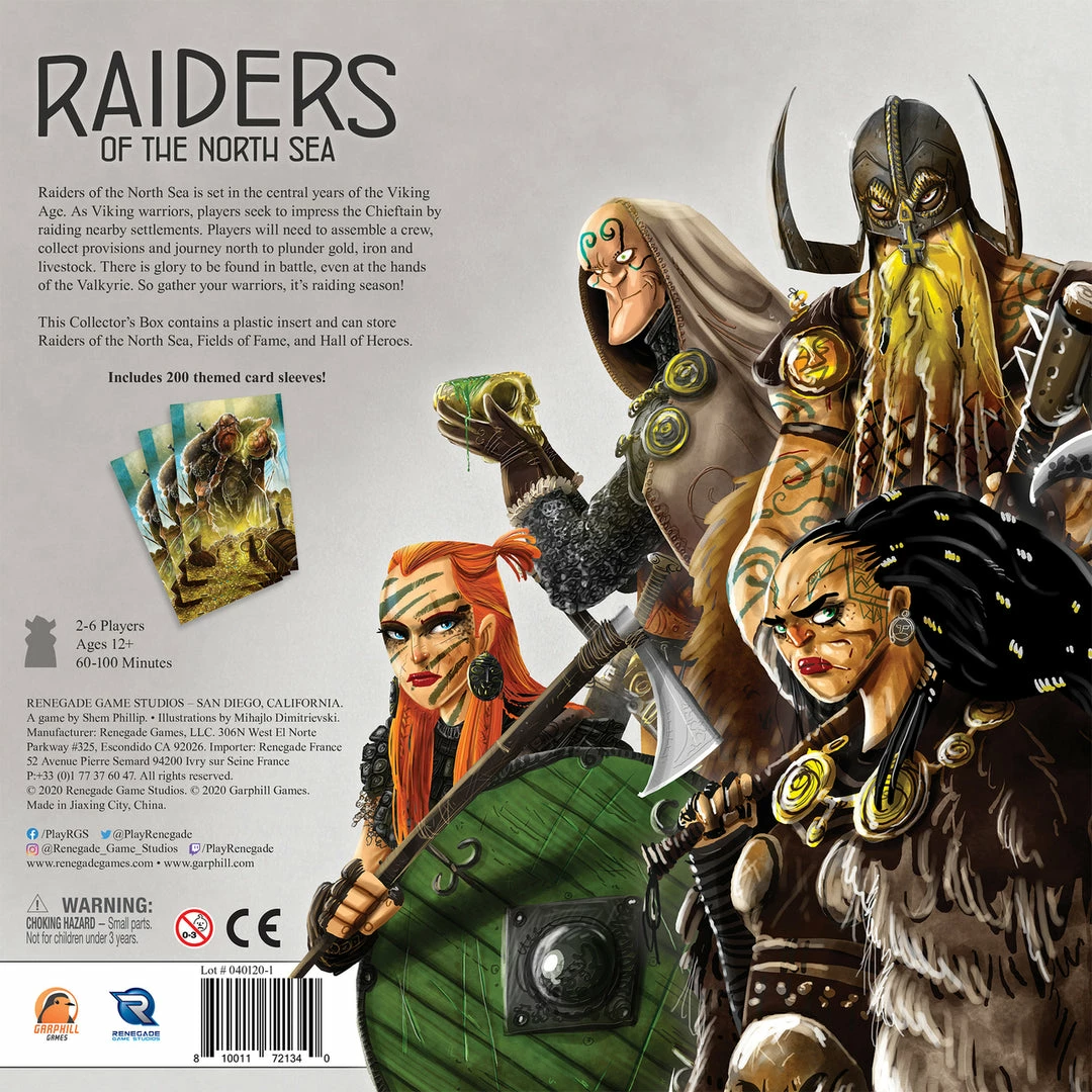 This Collector’s Box contains a plastic insert and can store Raiders of the North Sea, Fields of Fame, and Hall of Heroes.  Also includes 200 themed card sleeves!