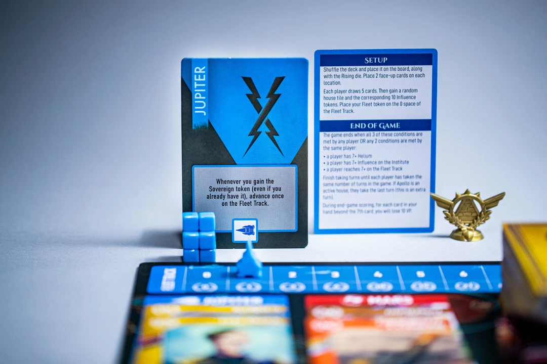 Enter the futuristic universe of Red Rising, based on the book series by Pierce Brown featuring a dystopian society divided into fourteen castes. You represent a house attempting to rise to power as you piece together an assortment of followers (represented by your hand of cards). Will you break the chains of the Society or embrace the dominance of the Golds?